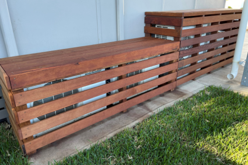 - Wooden framed covers over the air conditioning units for seating and safety;
