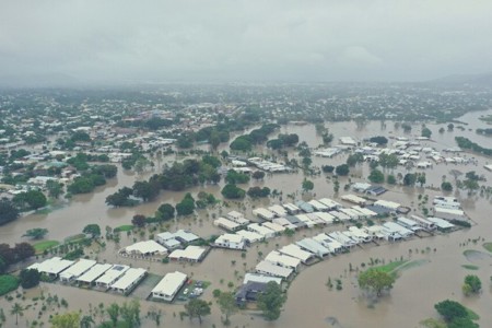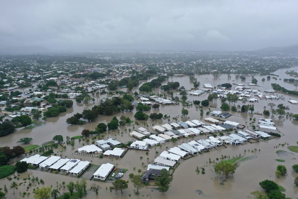 Aerial photo showing submerged properties and suburbs during the 2019 Townsville floods