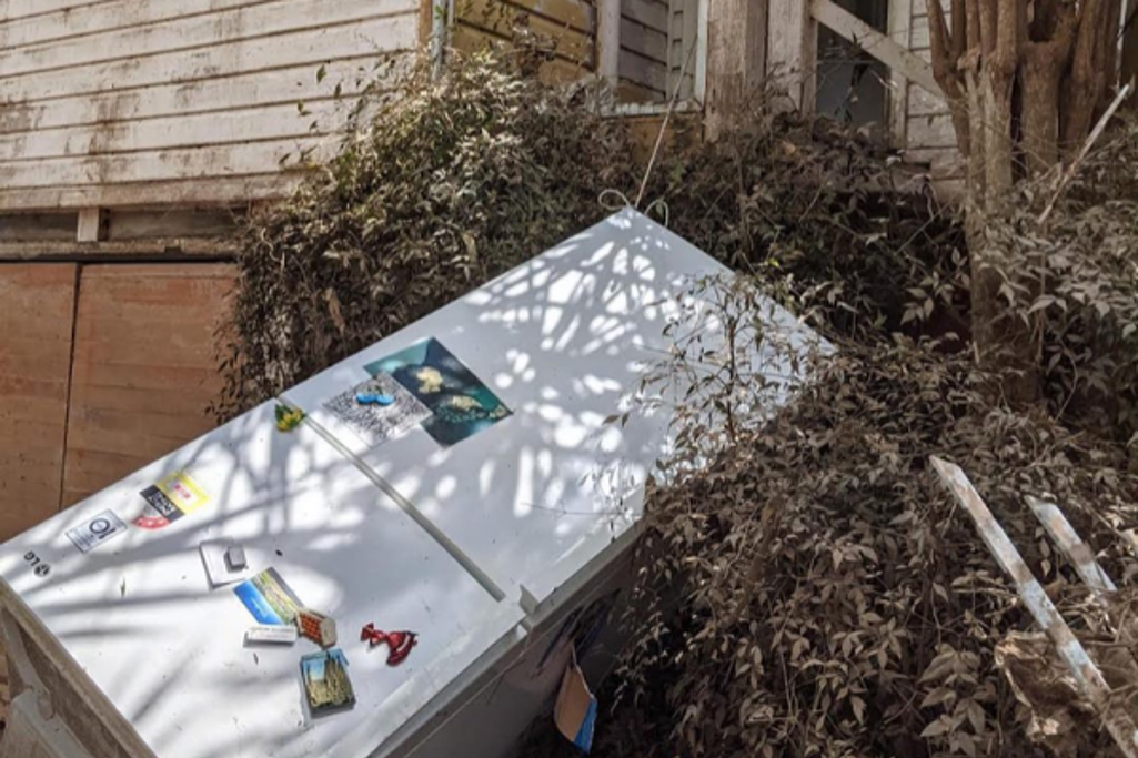 Lismore residents Jake* and Leonie* emptied their fridge (pictured below) and were ready to use it as a life raft as floodwaters rose through their house. They tied the fridge to their front landing, complete with cooking pot as a bailer, and were preparing to make their escape in the fridge when they were rescued. GIVIT coordinated the donation of vouchers to Jake and Leonie to buy a new fridge.
